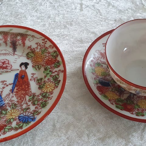 Et sæt med tre Loewe – Special Edition Gift keramiske teservices sæt fra Kina, bestående af en tekande (ca. 8,5 × 8,5 × 5,5 cm) og to kopper (begge ca. 6 × 6 × 4 cm), i fremragende ubrugt tilstand. Klik på den blå "gå til varen" knap, for at købe eller byde på denne vare. Den samlede pris vil blive vist inden du afgiver dit bud.