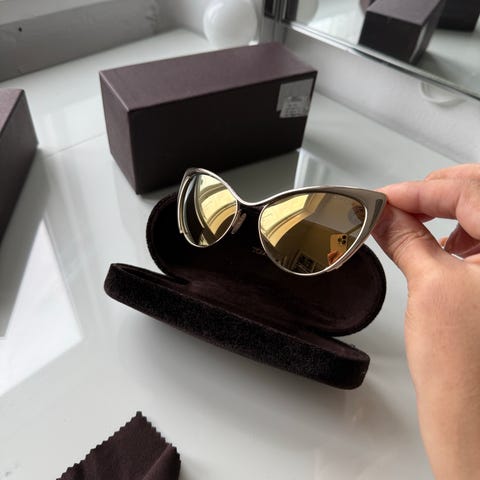 Blåt anti-reflekterende (AR+) indvendigt overfladefilter, Signature integrerede Tom Ford "T"-templer.
