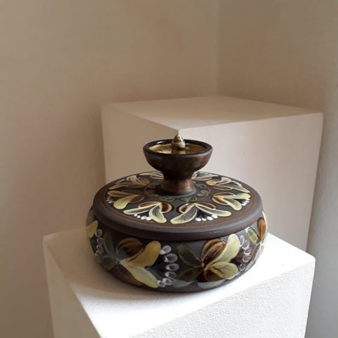 Smykkeskrin - Slikskål, Keramik gemmested, Slikdåse, Smykkeskrin, ca. 19 x 12 cm.