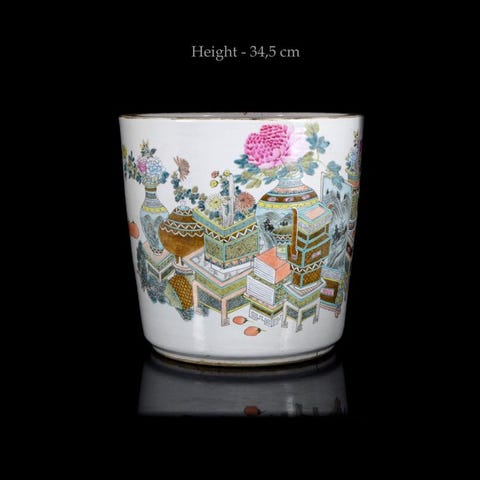 Kangxi (1662-1722) - Jardinière - Blomsterkirsebær og bambus, krysantemum, lo...