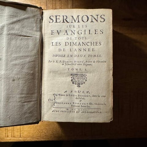 Sermoner af Olivier Maillard (1430-1502) herunder La Passion de Notre Seigneur Jésus Christ. Tre værker samlet i et kraftigt lille in-8 bind (parisiske tryk for Jehan Petit, 1515-1519). Et flot eksemplar indbundet i begyndelsen af det 19. århundrede og med en bemærkelsesværdig friskhed.