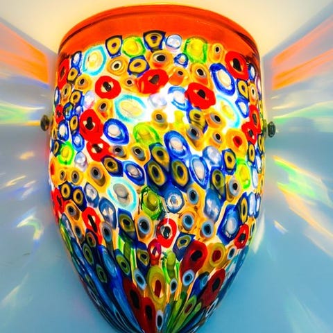 Fantastisk lampearmatur i ravfarvet mundblæst Murano-glas med jernstruktur.