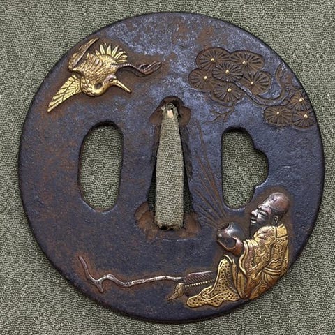 Katana - Kansukashi Tsuba 鐶透鍔, Myochin 明珍, Edo-perioden, jernbagside, NBTHK-c...