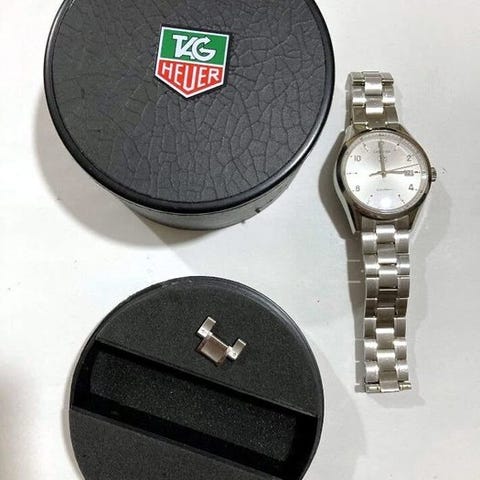 Dette TAG Heuer Carrera Calibre 16 Chronograph kombinerer sportslig elegance og schweizisk præcision i et tidløst design. Dets 41 mm rustfri stålkasse med tachymetrisk bezel og safirglas har en robust og sofistikeret tilstedeværelse. Den sølvfarvede urskive, dekoreret med radial børstet finish og chronograf subdials, bevarer sin skarphed og læsbarhed, mens safirglasset er i perfekt stand, uden ridser.