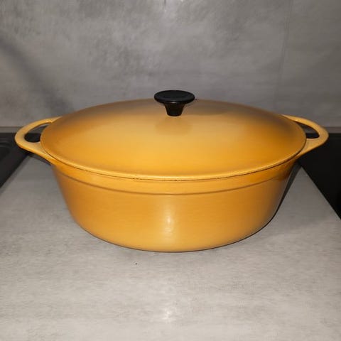 Meget sjældent fondue-sæt fra Cousances, det øverste segment af Le Creuset, i emaljeret støbejern. God stand, se billeder.