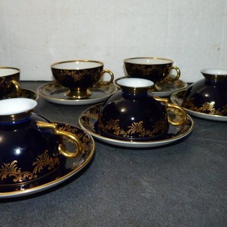 Smukke kopper til chokolade, kaffe med mælk eller endda til lille bouillon i Limoges-porcelæn fra Théodore Haviland.