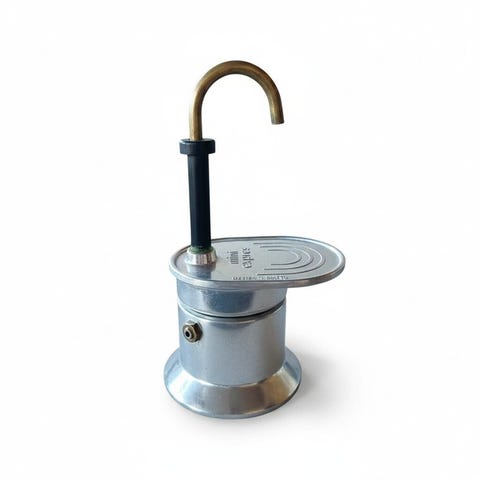 Vintage italiensk espresso moka kaffemaskine med en kapacitet på 6 kopper, produceret i 1980'erne af den anerkendte producent Vev Vigano.