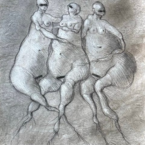 Robert Detheux (1932-2010), Figure en métamorphose (2007), crayon på papir med hvide højdepunkter, 50 × 36,5 cm, originaludgave, belgisk surrealistisk tegning. Klik på den blå "gå til varen" knap, for at købe eller byde på denne vare. Den samlede pris vil blive vist inden du afgiver dit bud.