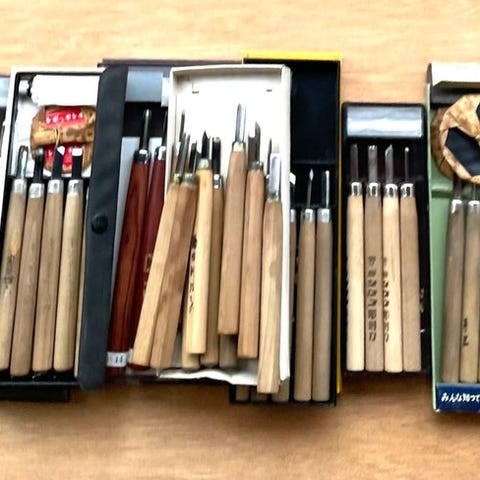 Japansk træskæringsknivssæt – (Brugt, jernblade, træhåndtag)