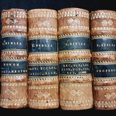 Tysk sprog Barok-Bibel Die Bibel Das Ist: Alle Bücher Der Ganzen Heiligen Schriftr Des Alten und Neuen Testaments, udgave 1772, udgivet i Zürich af David Gessner Gebrüber und Orell, Gessner, Fützlin und Compagnie, bindet i blindpræget svinlæder med ti dekorerede beslag og to originale spænder, målene 38 x 23 cm, 871 sider, i god stand. Klik på den blå "gå til varen" knap, for at købe eller byde på denne vare. Den samlede pris vil blive vist inden du afgiver dit bud.