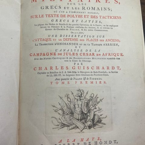 Originaludgaven af dette vigtige værk, der markerer et skridt i teoretiseringen af militærkunst, blev oversat. Den militære og strateg Jean-Charles de Folard (1669-1752) udvikler sine ideer ved at kommentere teksten af Polybe, under dække af at give en ny version af værket af den græske historiker.