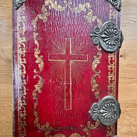 Breviarium Ambrosianum, komponeret af S. Ambrogio, er en latin liturgisk bog fra Milano udgivet i 1731 (Mediolani, Apud Beniamino de Sicutis, Impress. Archiepisc.), med 800 sider, format 17,5 x 12 cm, fire helsider med kobberstik, en ekstra håndskrevet side og en manglende side (pp. 568–569), samt blade uden tekst. Klik på den blå "gå til varen" knap, for at købe eller byde på denne vare. Den samlede pris vil blive vist inden du afgiver dit bud.