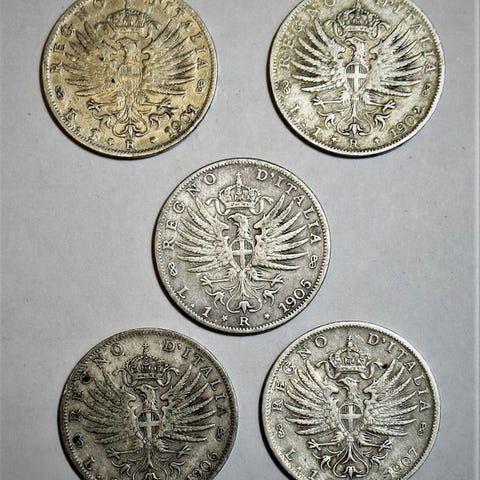 Italien, Kongeriget Italien, 1902, sølvmønt 1 lira med Savoye-ørnen, præget i Rom; bedømt af Fabio Perrone FDC 65; sjældenhed: almindelig; Gigante 2025 katalogværdi: 350€. Klik på den blå "gå til varen" knap, for at købe eller byde på denne vare. Den samlede pris vil blive vist inden du afgiver dit bud.