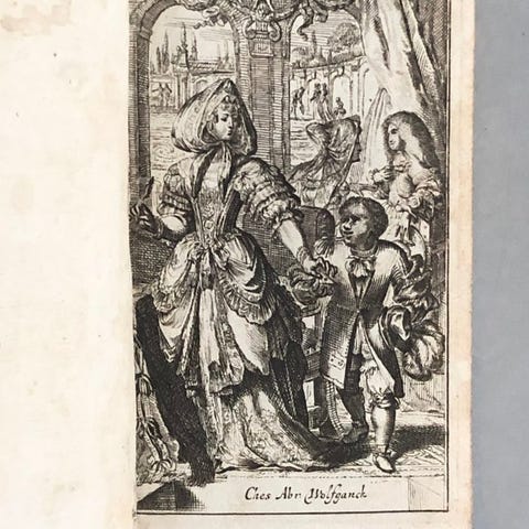 Forsynet med en smuk indbinding i fuldt maroquinbrunt læder, prydet på forsiden med en stor trykplade med orientalske motiver, omgivet af en dobbelt guldramme som indramning, glat og uden titel på ryggen, dobbelt guldrand på bagsiden. Bagcover (prydet med et trykt netmønster) og forsider er dækket af grønne læderindlæg. Forside og ryg er bevaret.