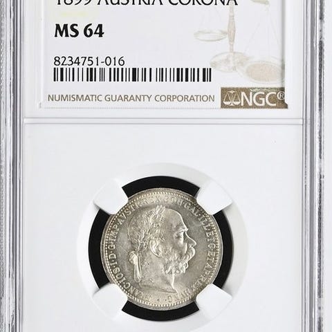 Denne kobber-nikkel-mønt har den karakteristiske østrig-ungarske stil med det dobbelte skjold overkronet af den kejserlige krone. Den blev udstedt i slutningen af det 19. århundrede under Franz Josef I's lange regeringstid, en vigtig monark i Centraleuropæisk historie. Dens AU53-tilstand indikerer, at den er i fremragende stand for en mønt, der var i almindelig omløb.