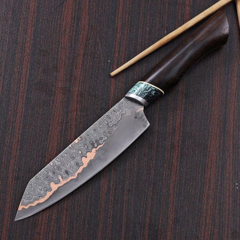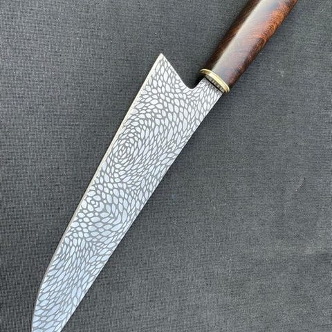 Du ville trække kniven langs prikkene i en bestemt vinkel for at genoprette kanten og holde den i god stand.