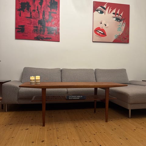 Retro teak sofabord med flethylde fra 60`erne. Kan blive dit for 1500 kroner