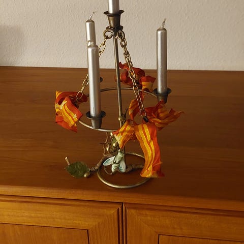 Julestage i plastik fra 60'erne fungerer perfekt 29cm h og 45 cm l