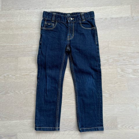 Rigtig pæn turkisfarvet bluse med motiv på forstykket, har lange ærmer. 1 par lange bukser med seler, mørkblå med lysblå effekt ved lommerne, er gennemforede og med knaplukning ved benene. Kun brugt få gange er derfor pænt og i orden