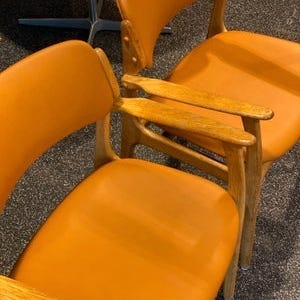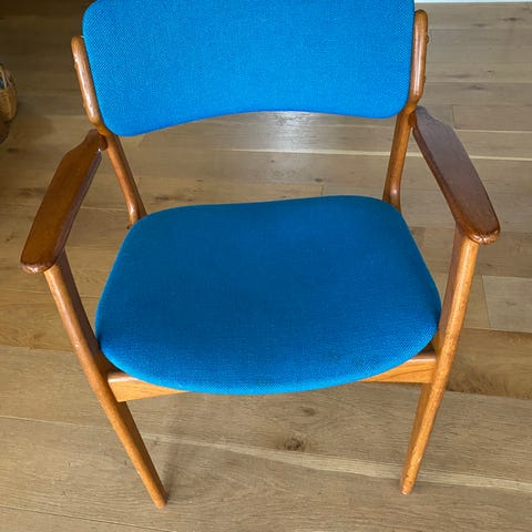 Erik Buch armstol model OD49 i bejset eg , polstring med cognac farvet emiteret læder.