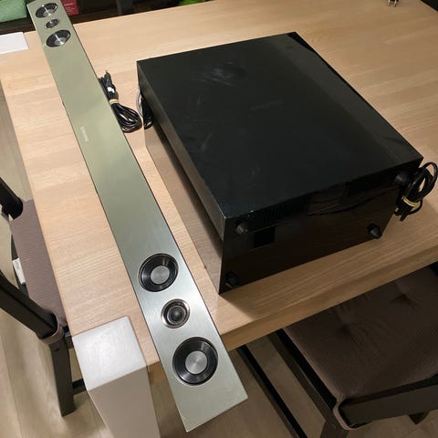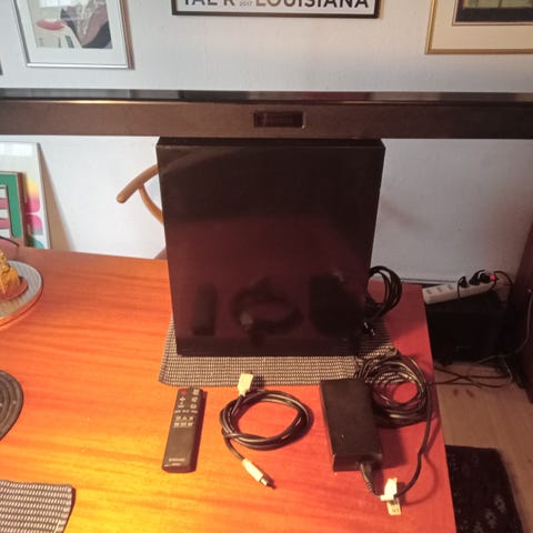 Samsung HW-J561 soundbar med subwoofer og fjernbetjening. Soundbaren har en effekt på 25W og subwooferen 28W. Strømforsyning til soundbar: DC24V, til subwoofer: 12V. Farve: sort. Materiale: plast og metal. Nypris lidt under 3000. Se eventuelt https://www.elgiganten.dk/product/tv-lyd-smart-home/hojtalere-hi-fi/soundbar/samsung-21-soundbar-system-hw-j561-solv/HWJ561