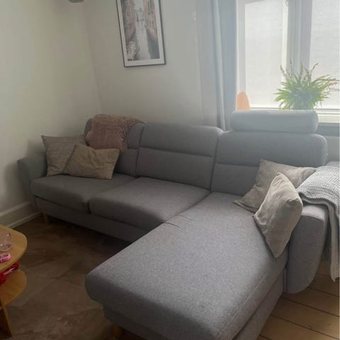 Fin stor sofa sælges. Vi syntes den er for stor til vores lille stue .rigtig fin stand, har få små pletter som nemt kan renses. Dimensioner er på billede 4