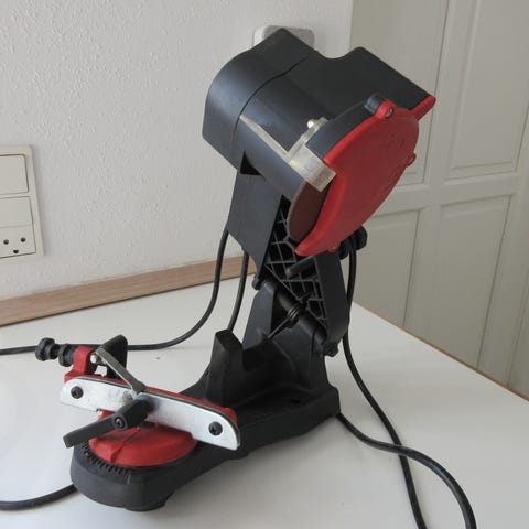 Dette er en elektrisk slibemaskine med en størrelse på 14x15,5 cm. Den har en grøn farve og er udstyret med en lang sort ledning. Maskinen ser ud til at have en robust konstruktion og er velegnet til forskellige slibeopgaver.