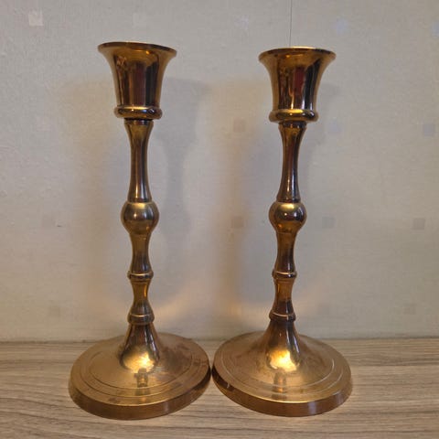 Sæt af antikke messing lysestager (str. 23 cm)