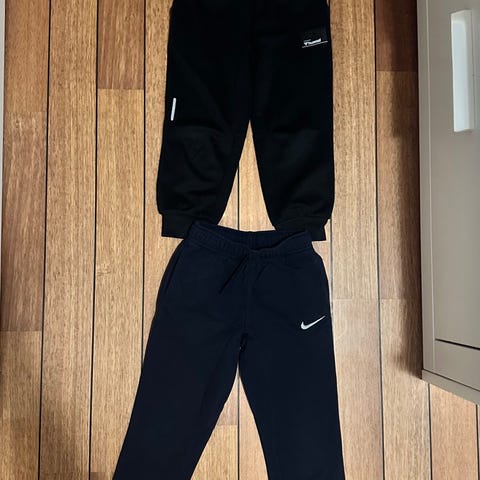 Bukserne er fra Nike og har et kamuflage mønster i grønne og sorte toner. De har elastisk talje med snøre og elastiske manchetter ved benene. Et ikonisk hvidt Nike-logo er placeret på højre ben.