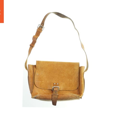 Denne lille skuldertaske er lavet af brunt læder og har et rektangulært design med målene 22x15,5 cm. Tasken har en justerbar rem, som gør det muligt at bære den over skulderen. Forsiden af tasken er udstyret med en flap, der lukkes med en dekorativ spænde, mens bagsiden har en lynlåslomme til opbevaring af små ting. Tasken har mærket 'EXIT' præget på forsiden, hvilket tilføjer et unikt præg til designet. Tasken er ideel til let opbevaring og kan bruges til både hverdag og specielle lejligheder.