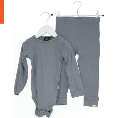 Et sæt bestående af en langærmet bodystocking og leggings i rosa med leopardmønster. Bodystockingen har knaplukning i bunden og detaljer ved skuldrene. Leggings har elastikbånd i taljen og en lille flæse bagpå.