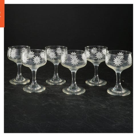 Sættet indeholder seks gamle glas asietter / desserttallerkener af ca. 15 cm i diameter. Tallerkenerne har et elegant blomstermønster præget ind i overfladen, som tilføjer en dekorativ detalje til deres klare glasdesign. Disse tallerkener er velegnede til servering af små desserter eller snacks.