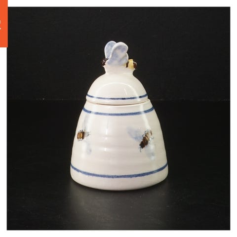 Denne Toby jug er en dekorativ keramikkande formet som en mand iført hat. Den har et robust håndtag på siden og en lille tud på toppen til at skænke væske. Den er farverigt dekoreret i nuancer af brun, blå og beige. Størrelsen er 8,5 cm.