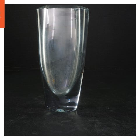 Glas vase med en diameter på 14 cm. Vasen har en afrundet form med vertikale riller, der skaber et elegant og moderne udseende. Ideel til at holde blomster eller som en dekorativ genstand i hjemmet.