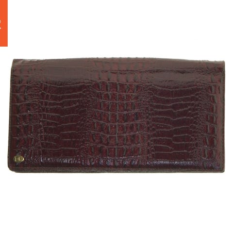 Dette er en pung med en krokodillemønster, der måler 14x11 cm. Pungen har en klap lukning og indeholder rum til kort samt lynlåsrum til mønter. Det er designet med teksturen af krokodilleskind, hvilket giver det et stilfuldt udtryk. Den lukkes med en trykknap og har et ekstra lynlåsrum på bagsiden.