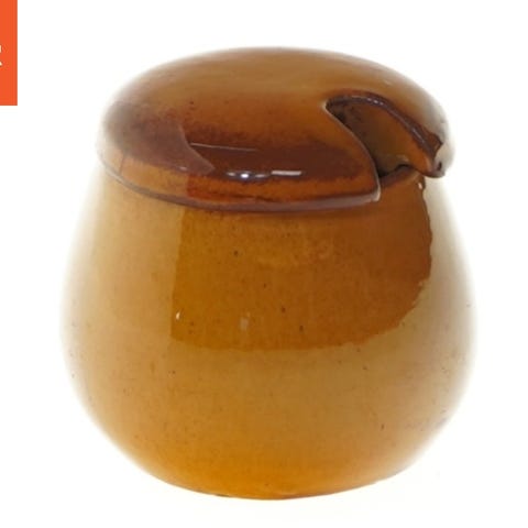 Keramik Sennep Beholder med låg og træ tappehane (str. 28 cm)