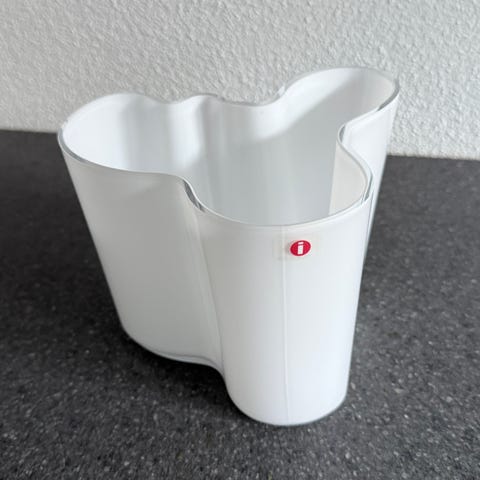 Smuk Iittala vase eller skål, 12 cm høj, af Alvar Aalto, i hvidt opal-glas. Stand som ny. Sælges for bekendt pga flytning til mindre plads og dermed overskud af diverse. Hun har ikke rigtigt brugt den, den har bare stået i et vitrineskab. Ren og i orden, fra ikke-ryger hjem.