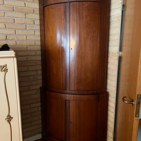 Vitrineskab med.glas foroven og skab med hylder forneden
