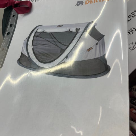 Deryan pop up rejseseng. I fin stand. Inklusiv to madrasser (se billeder). Kan foldes sammen så det altsammen kan være i posen.