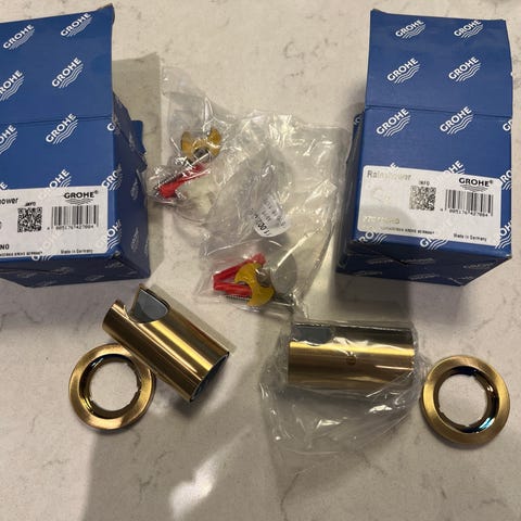 Grohe holder til bruser i børstet stål. Stadig i sin originale kasse og aldrig monteret.