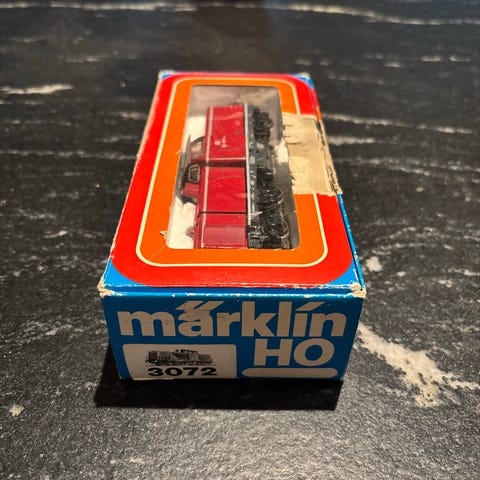 Märklin 3016 HO modeltog i rød farve med sølvfarvet tag. Skala HO, egnet til modeljernbane samlinger.