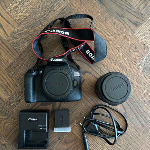 Sælger mit Canon EOS 1300D spejlreflekskamera med medfølgende EF-S 18-55mm f/3.5-5.6 IS II objektiv, da jeg ikke får det brugt. Det har været brugt begrænset, og fremstår derfor som nyt.