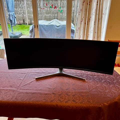 Sælger min Samsung Odyssey G9 ultra-wide curved gaming skærm i perfekt stand. Fungerer upåklageligt - ingen fejl, ingen dead pixels, ingen ridser.