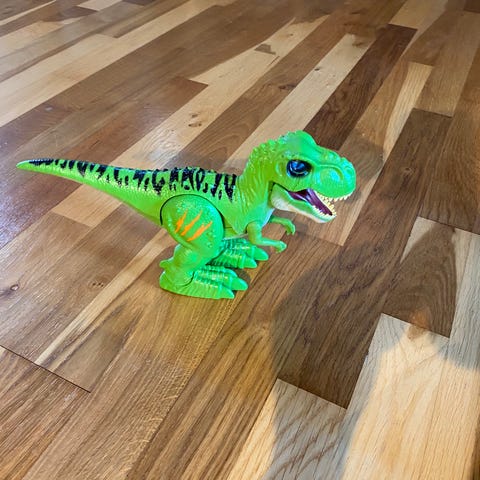 Vulkanø med flere niveauer og 7 solide dinosaurer i træ, der kan flyttes frit rundt på øen.