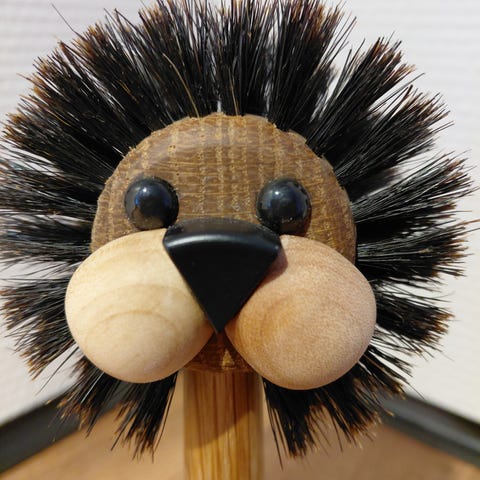 Løven er lavet i eg, kinderne er i ahorn og manken er lavet af børster.