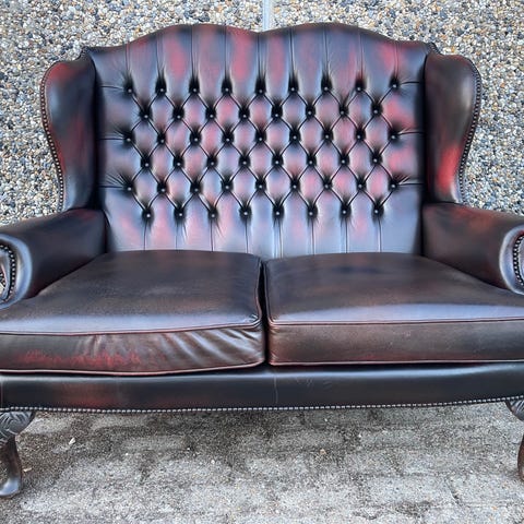 Fantastisk original tre-personers Chesterfield sofa i fremragende stand. Sofaen er omkring 30 år gammel og næsten ikke brugt. Grøn farve, smuk patina. Prisen er 8200 kr. Levering er gratis!!!