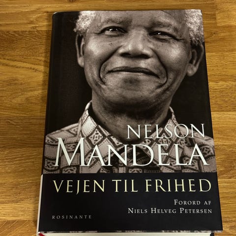 Mandela Bog med sort omslag. Har ligget i en opbevaringskasse i flere år. Læst en gang. Indeholder tekst og billeder relateret til Nelson Mandela. Bogens sider er illustrerede og indeholder historisk indhold om Mandela.