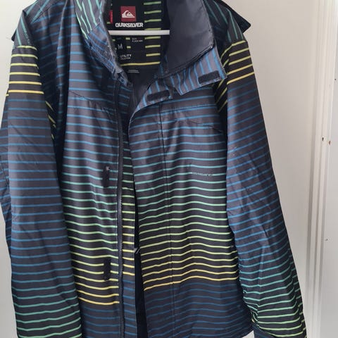 Sort og hvid skijakke / vinterjakke fra North Field med masser af lommer, inderlommer, og ventilations-lynlås med net under begge arme (se foto). Den kan lukkes både med lynlås - som kan åbnes både oppefra og nedefra - og velcro. Aftagelig hætte og aftagelig snefang i bunden af jakken. Den ene sidelomme kunne jeg ikke lige lukke - måske sidder den bare fast og kan lukkes med lidt snilde. Den ene lynlås foran mangler et lidt større gribe-led (se foto) - det kan man sagtens selv sætte i, enten ved at isætte en papirklips eller flytte en af sidelommernes greb.