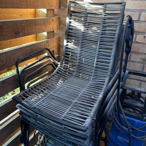 Flet havestol med aftagelige hynder i lyse farver. Stolen er designet til udendørs brug og har en robust konstruktion i flettet materiale. Hynderne er polstrede for ekstra komfort. Har kun haft stående i udestue én sommer. Købt i Havemekka Stenløse kr 2.000 pr stk. Sælges til kr 900 stk med hynder gr flyt til lejlighed. Hentes i Ølstykke, tæt ved Egedal St.