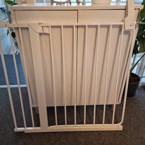 Sikkerhedsgitterets låge kan åbnes i begge retninger med bare én hånd.